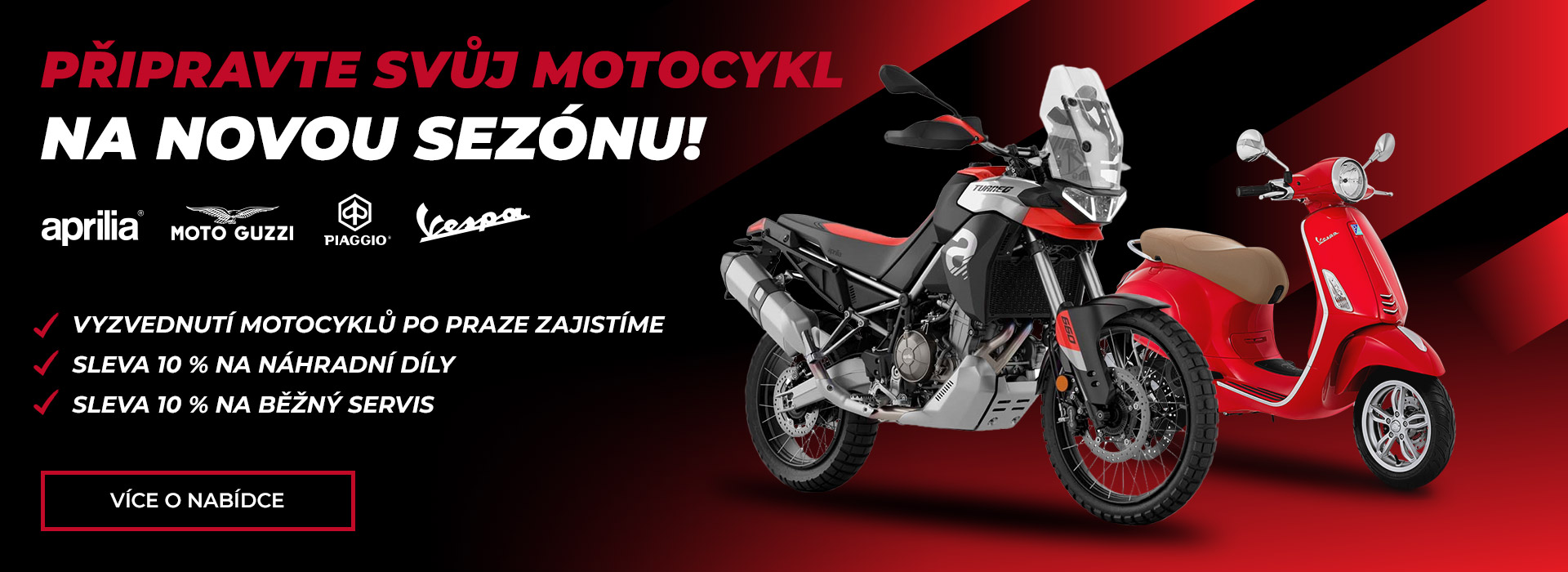 Je váš motocykl dostatečně připravený na příští sezonu? Přivezte jej k nám do IMOFA a my prověříme jeho kondici. V případě zjištění problému či závady vám nabídneme opravu za příznivou cenu. Servisujeme motocykly značek Aprilia, Moto Guzzi, Vespa a Piaggio.