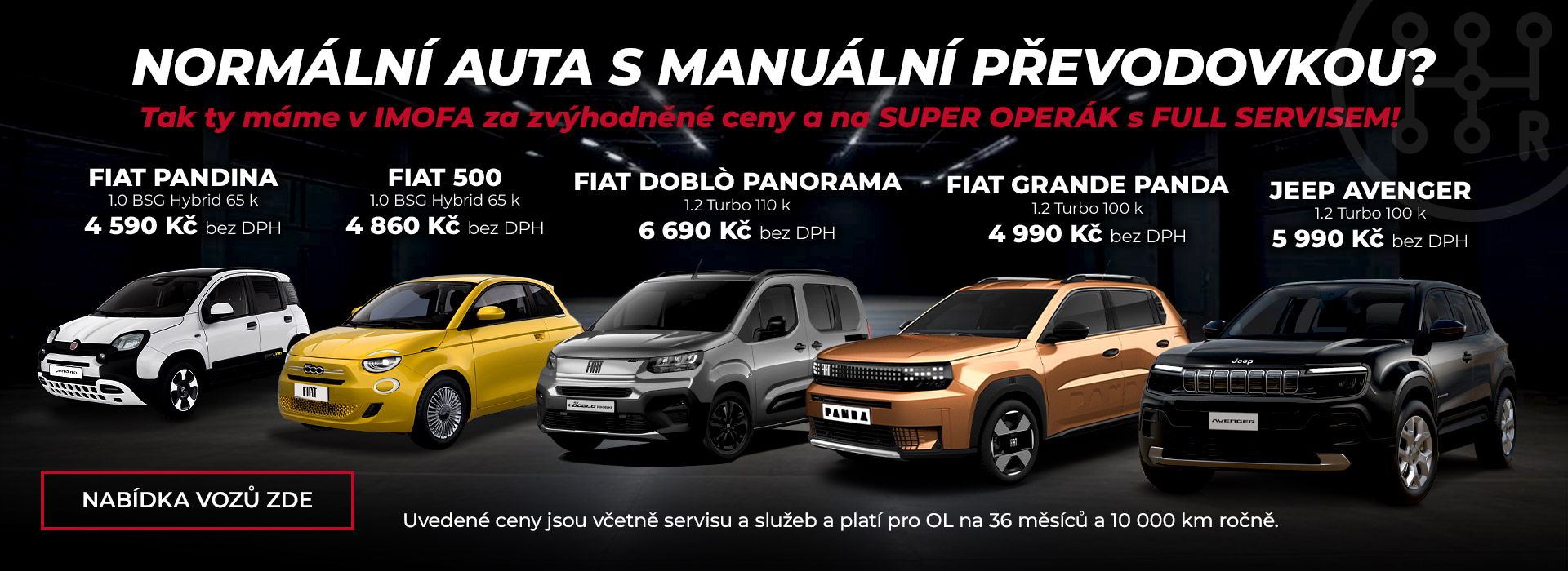 Společnost IMOFA spol. s r.o. je na českém trhu leaderem ve svém oboru již více jak 30 let, díky bohatým a dlouholetým zkušenostem poskytuje komplexní služby v oblasti prodeje vozů a autorizovaný servis automobilů Abarth, Alfa Romeo, Fiat, Jeep, Maserati, Lancia, Chrysler, Dodge a Piaggio Commercial. Nedávno do svého portfólia značek přibrala i motocykly renomovaných značek s bohatou historií Piaggio, Vespa, Aprilia a Moto Guzzi.