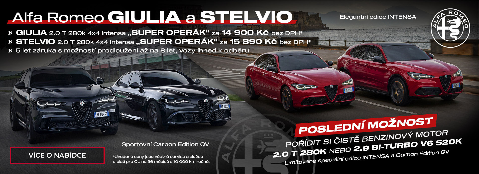 Ikonické modely Alfa Romeo Giulia a Alfa Romeo Stelvio míří v roce 2026 do svého finále v podobě, jak je známe – s perfektním rozložením hmotnosti, precizním podvozkem, citlivým řízením a spalovacími motory, které nadšené řidiče nepřestávají bavit. A právě teď máte u nás v IMOFA poslední příležitost pořídit si je v těch nejatraktivnějších provedeních.
